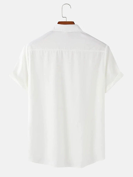 Men's solid Hawaiian palm tree print casual short sleeve shirt