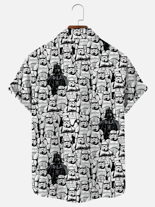 Men's Cartoon Stormtrooper Crowd Print Hawaiian Short Sleeve Shirt