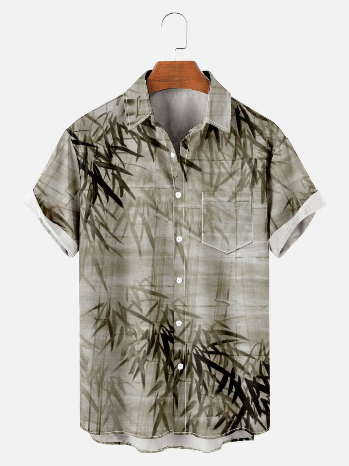Bamboo Print Loose Short Sleeve Shirt Men's Top
