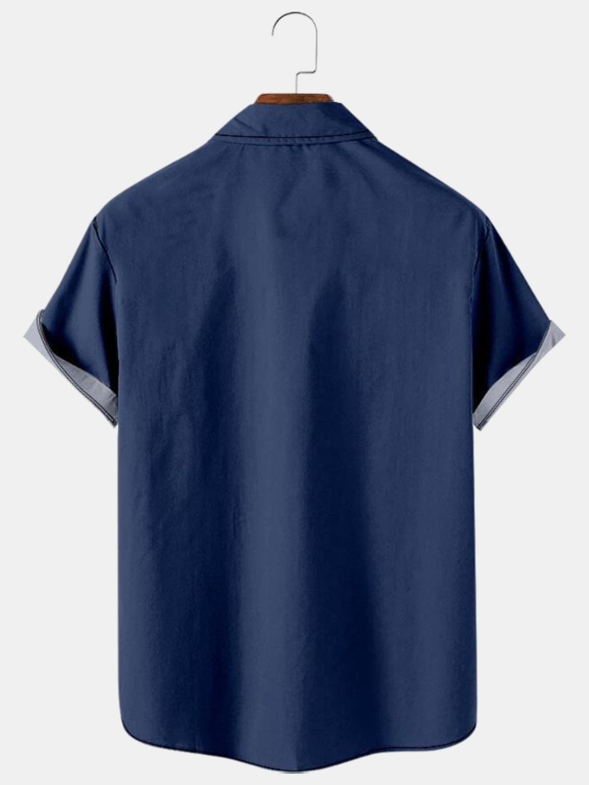 Casual Art Collection Geometric Stripes Color Block Pattern Lapel Short Sleeve Shirt Print Top