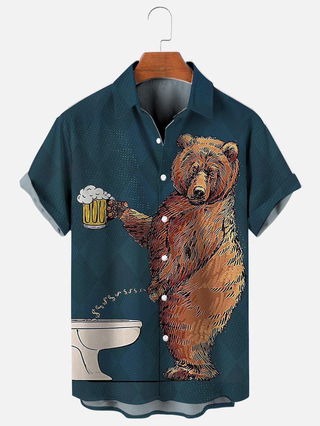 Fun Bear Beer Print Casual Short Sleeve Shirt