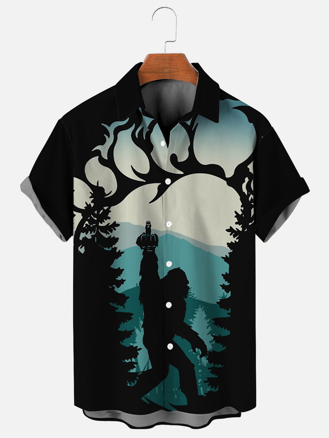 Men's Bigfoot Print Casual Short Sleeve Shirt