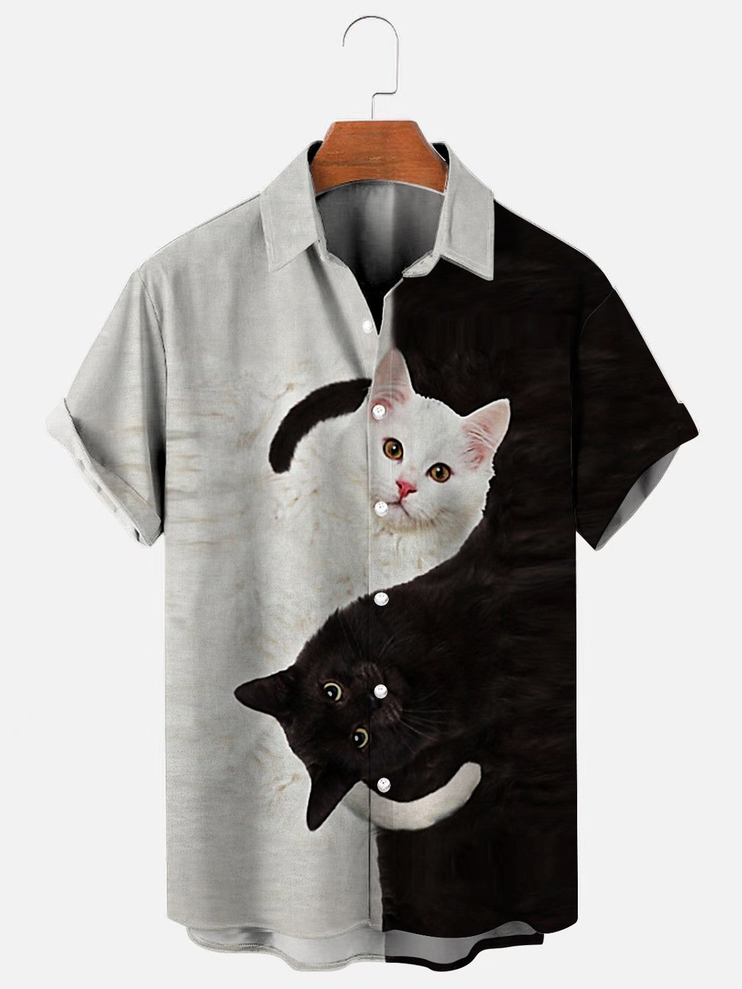 Men's Black and White Cat 3D Print Hawaiian Short Sleeve Shirt