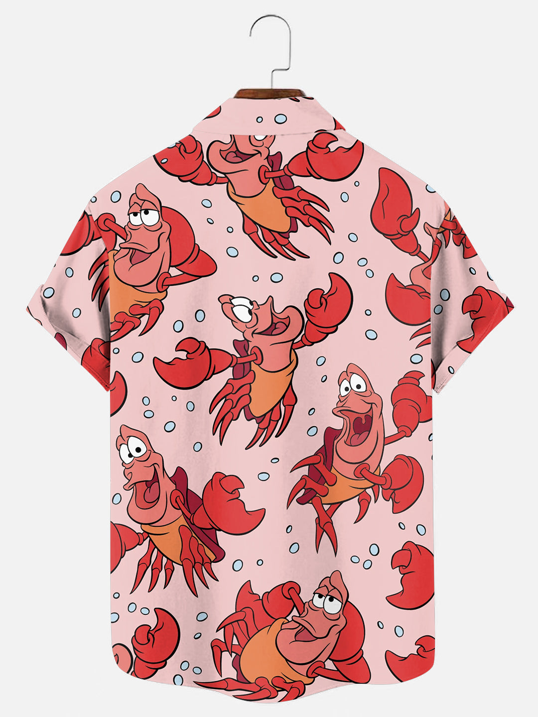 Men's Cartoon Lobster Print Holiday Short Sleeve Shirt