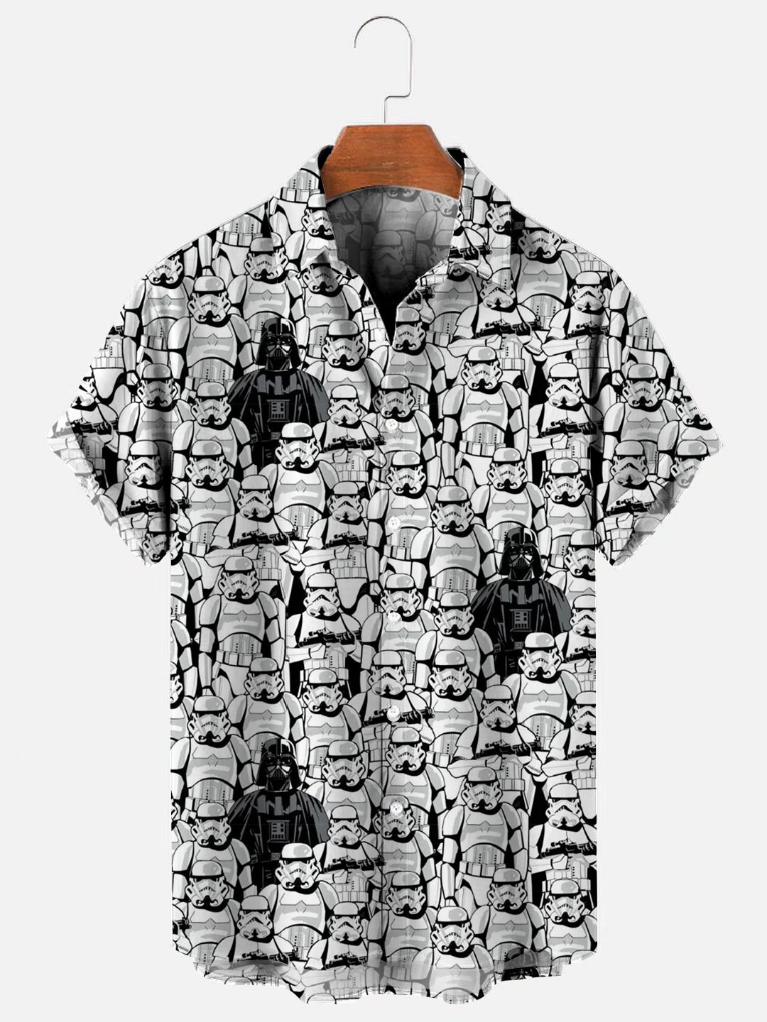Men's Cartoon Stormtrooper Crowd Print Hawaiian Short Sleeve Shirt