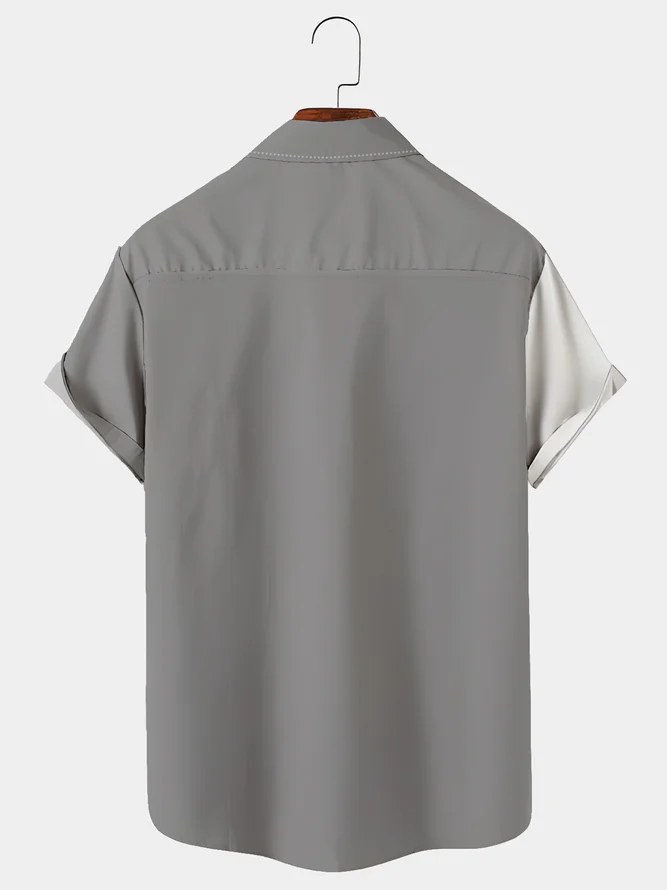 Men's Coconut Tree Colorblock Print Casual Breathable Hawaiian Short Sleeve Shirt with Pockets