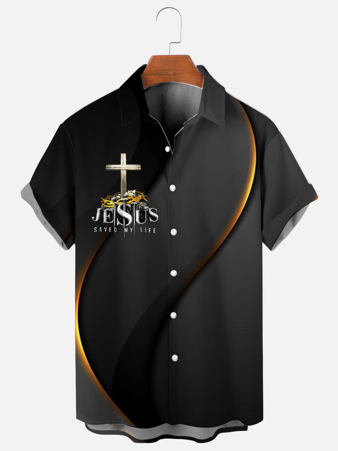 Men's Easter Cross Print Holiday Short Sleeve Shirt