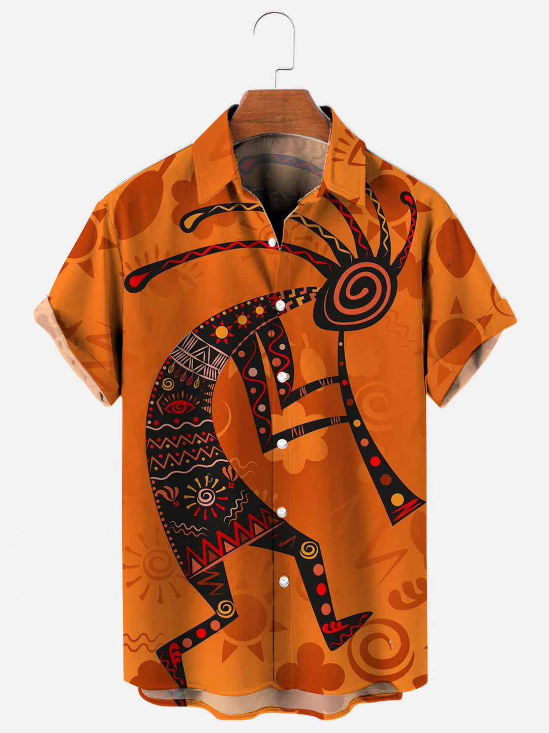Men's Kokopelli Ethnic Print Hawaiian Short Sleeve Shirt