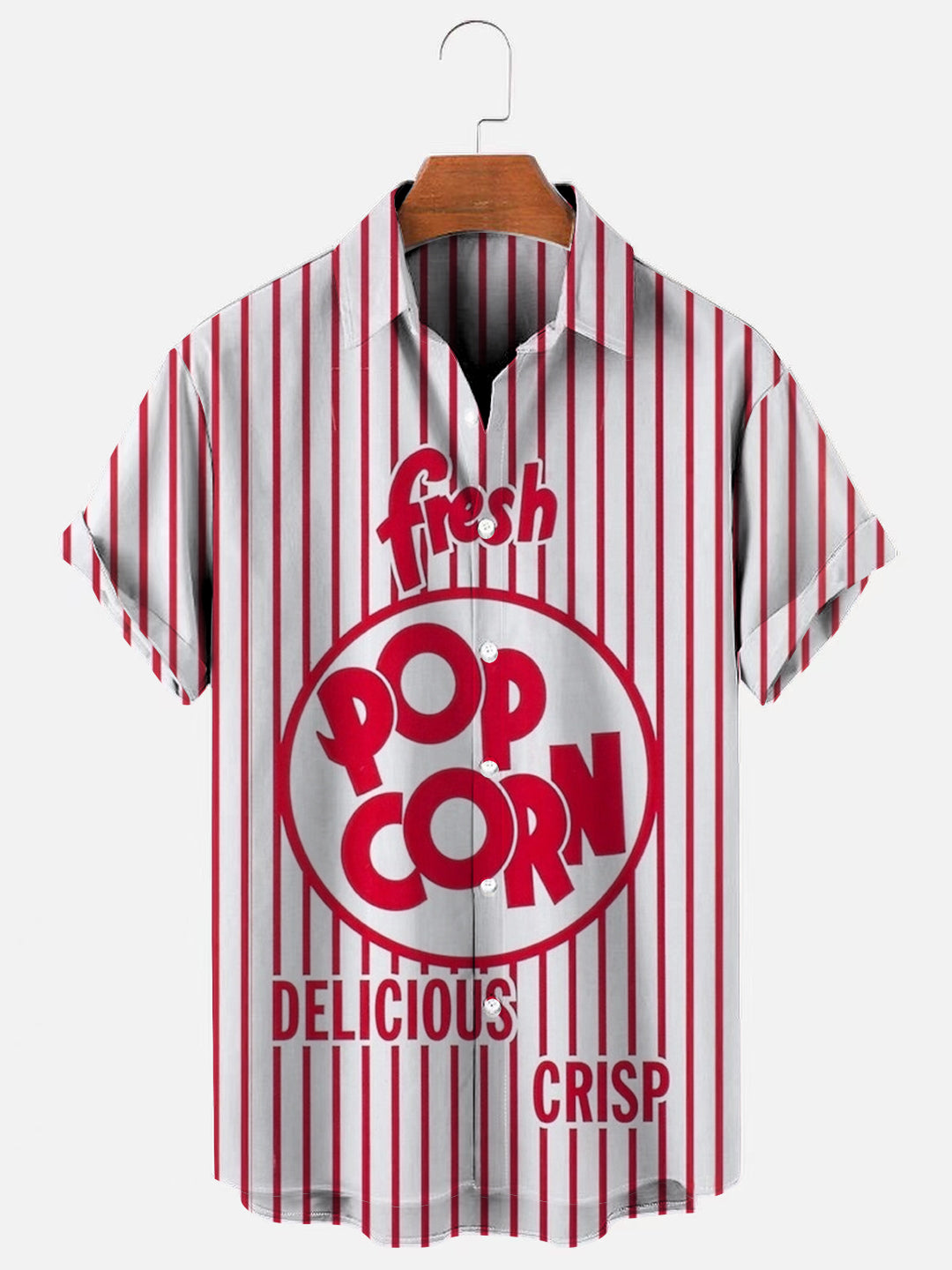 Men's Retro Popcorn Box Print Hawaiian Short Sleeve Shirt