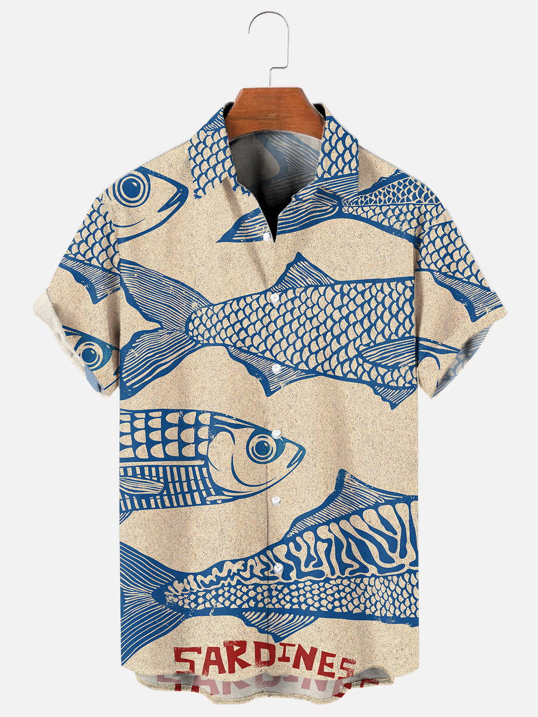Men's Retro Sardines Pattern Print Breathable Casual Short Sleeve Shirt