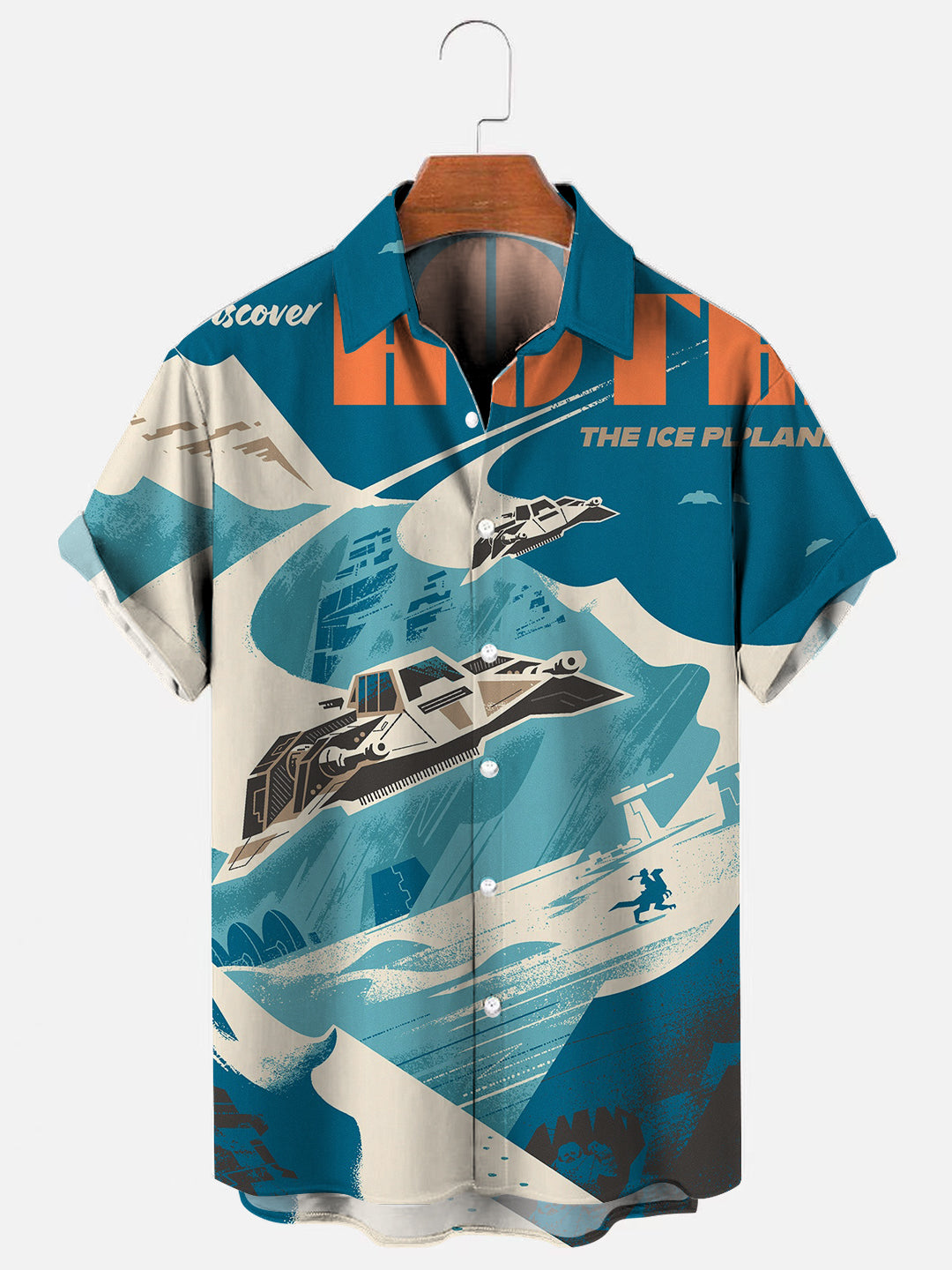 Men's Retro Space War Spaceship Poster Print Casual Short Sleeve Shirt