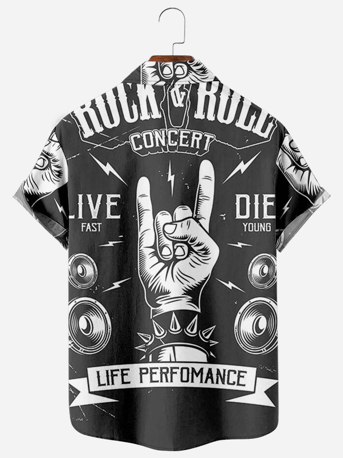 Men's Rock Poster Print Casual Loose Short Sleeve Shirt