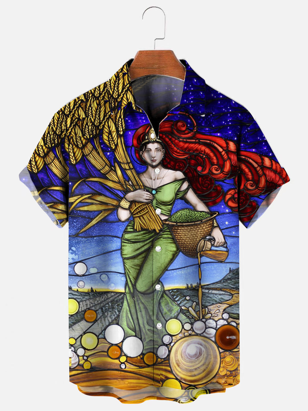 Men's Vintage Beer Goddess Stained Glass Print Hawaiian Short Sleeve Shirt