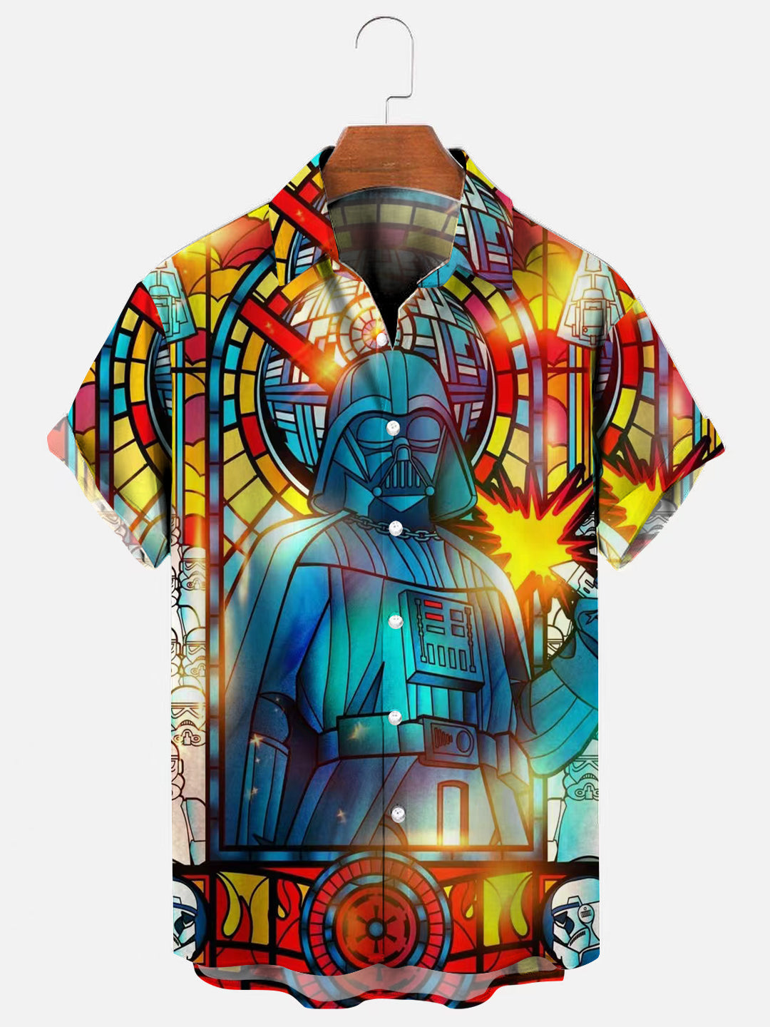 Men's Vintage Skywalker Stained Glass Print Hawaiian Short Sleeve Shirt