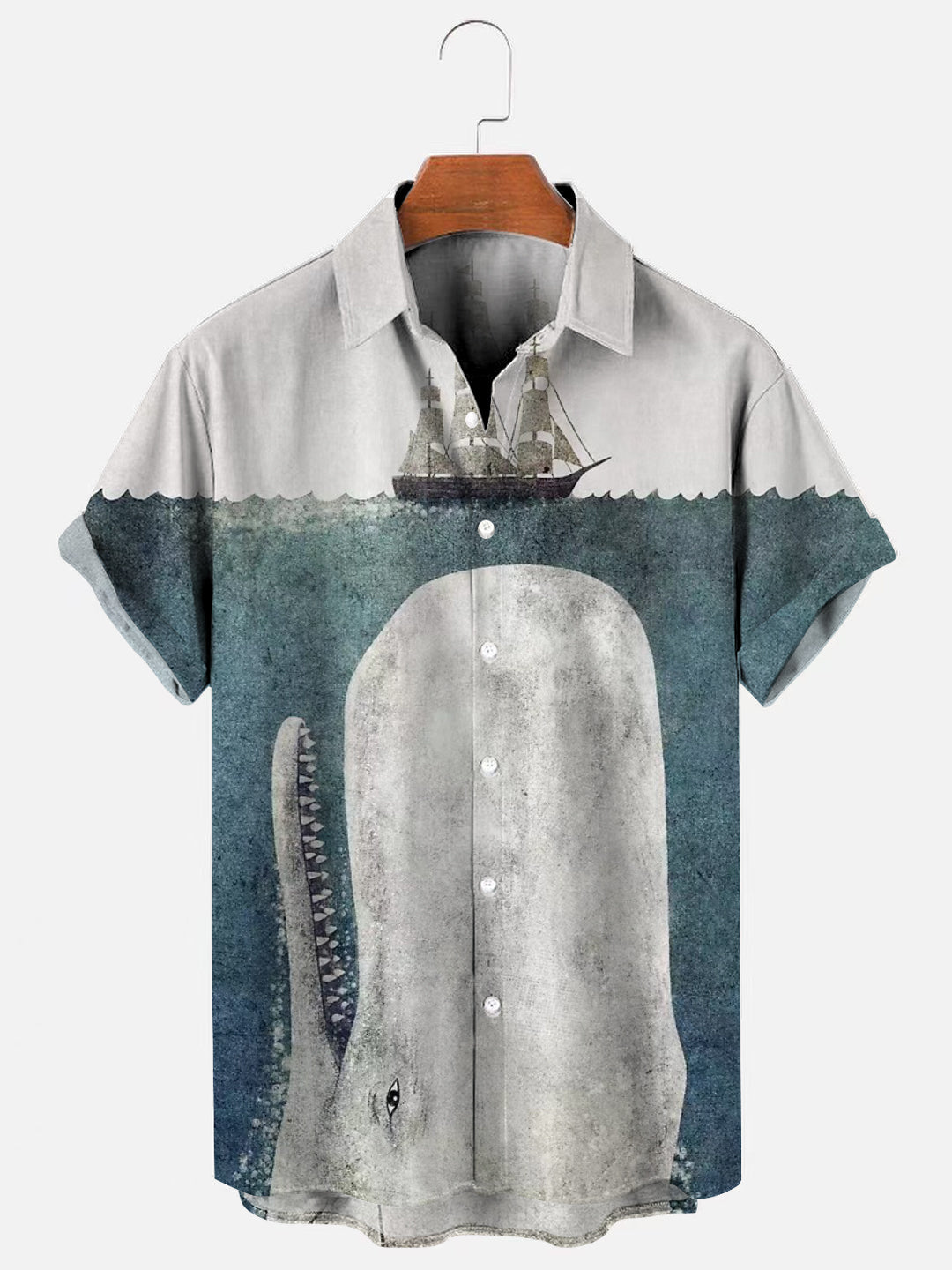 Men's Whale Print Hawaiian Casual Short Sleeve Shirt