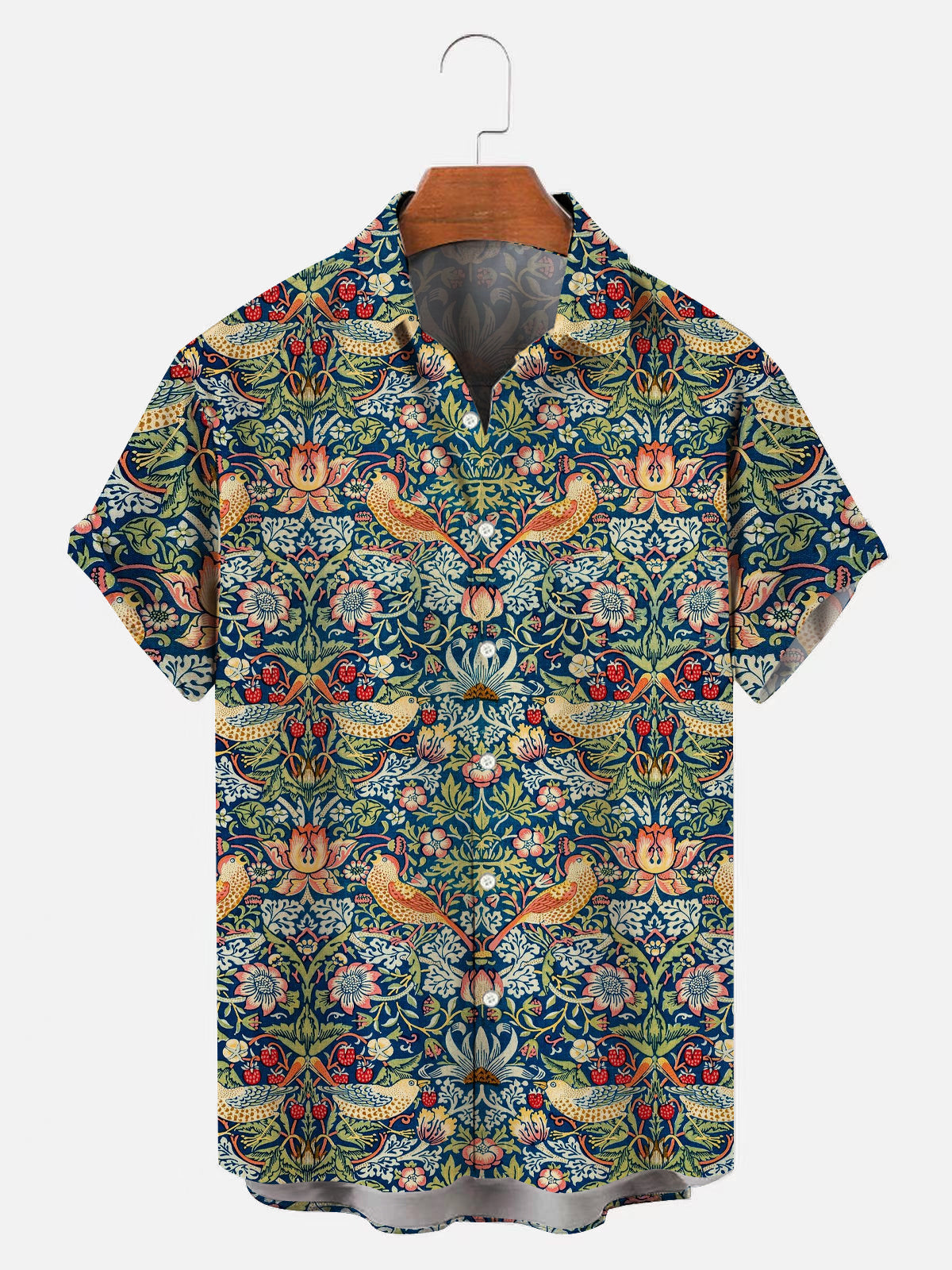 Strawberry Thief Vintage Men's Hawaiian Short Sleeve Shirt