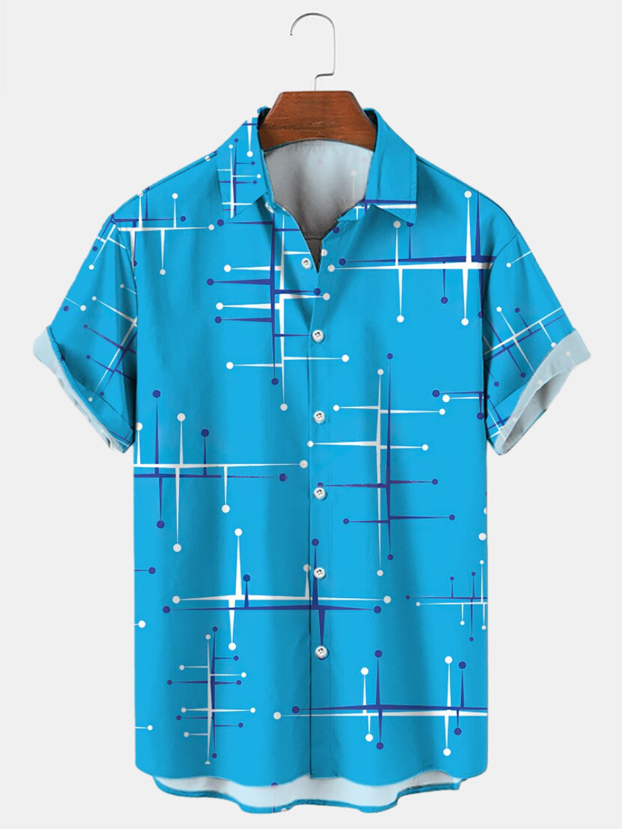 Vintage Mid Century Modern Geometric Blue Men's Casual Short Sleeve Shirt